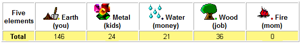 Fire is the Mother Element of Earth. Additional Fire can generate more Earth. The birth chart has already enough Earth; we don't need extra Earth. If additional Fire arrives, then stronger Earth makes Adam become a strong-minded, domineering, overbearing and dictatorial person. |